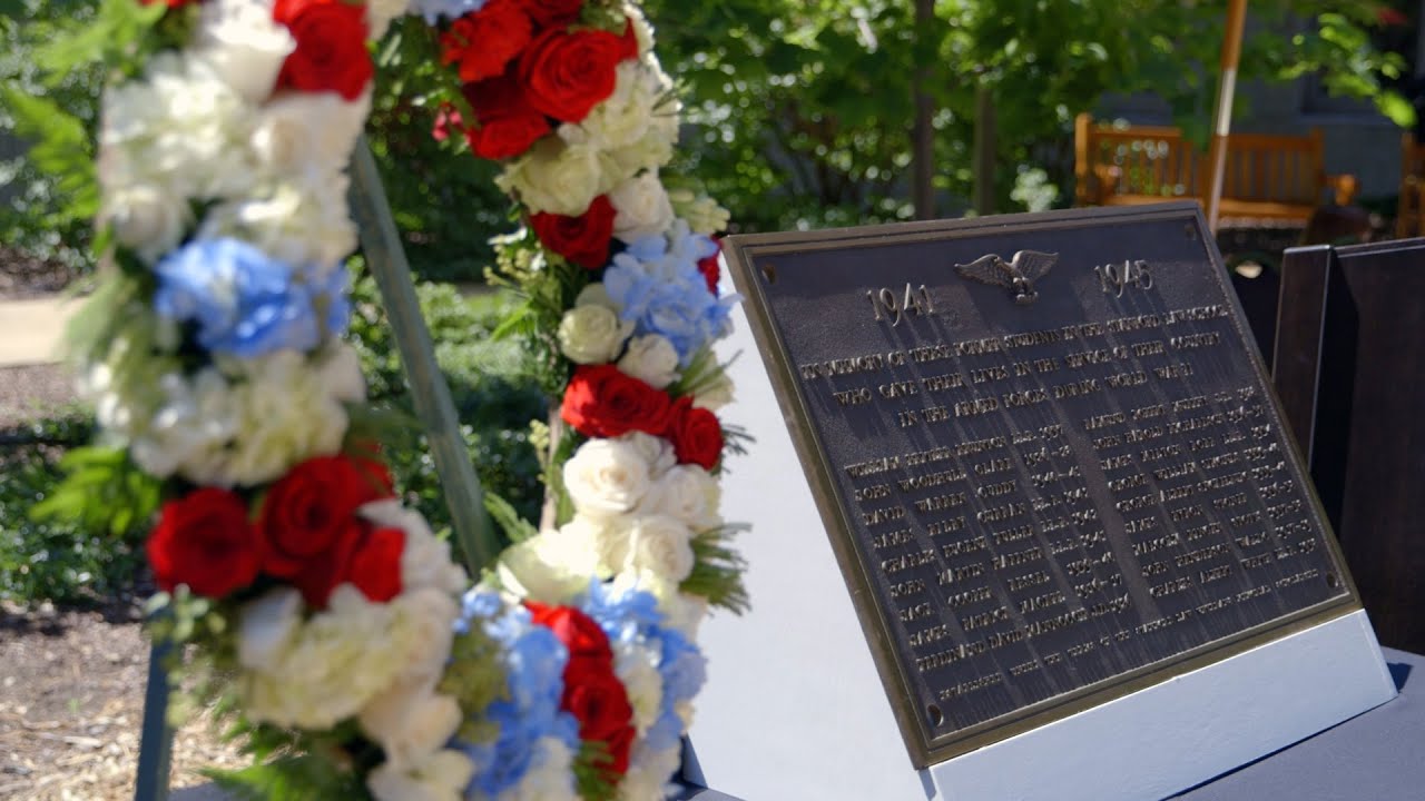 Captains Brunton and Simonds are among hundreds of Stanford Law School (SLS) students and graduates who served during World War II in all branches of the military, all over the world. On Thursday, May 27, on a bright sunny day, about 80 veterans, students, faculty, staff and friends gathered in the shade of “The Grove,” a stand of giant redwoods behind the law school library, to honor those killed during that war and all who have served our country.