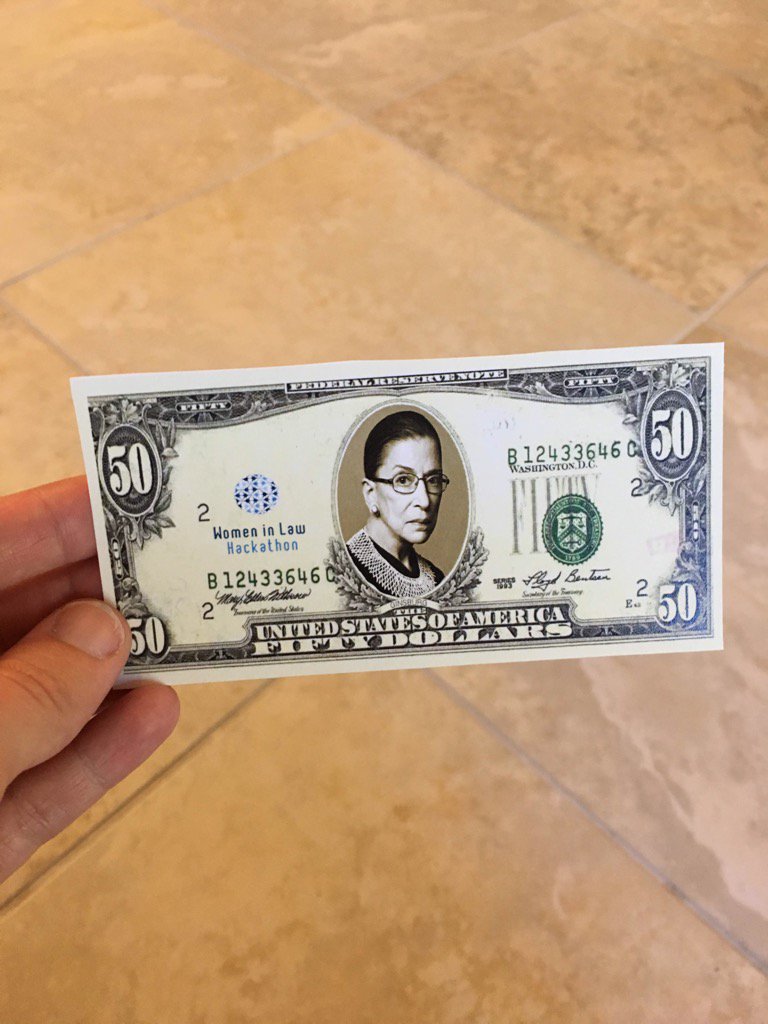 Stanford Law School hosted the Women in Law Hackathon June 23-24, 2016 to address the glass ceiling problem in law firms. Nine teams, each made up of leading partners from around the country and one Stanford Law School student, spent six months working on ideas to close the gender gap in law firms. On June 24, the teams came together on Stanford’s campus to pitch their ideas to each other and to a panel of prominent judges. Participants cast their votes with Ruth Bader Ginsbug-themed bills (pictured).